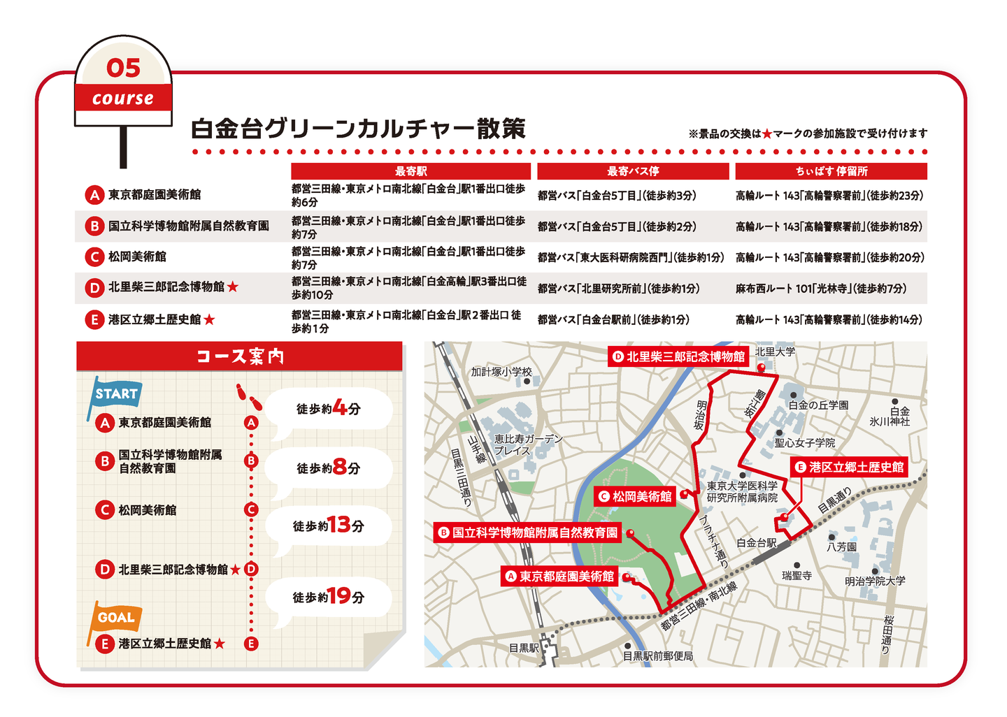 各コースのゴール施設では、スタンプを集めた方に景品をプレゼント!