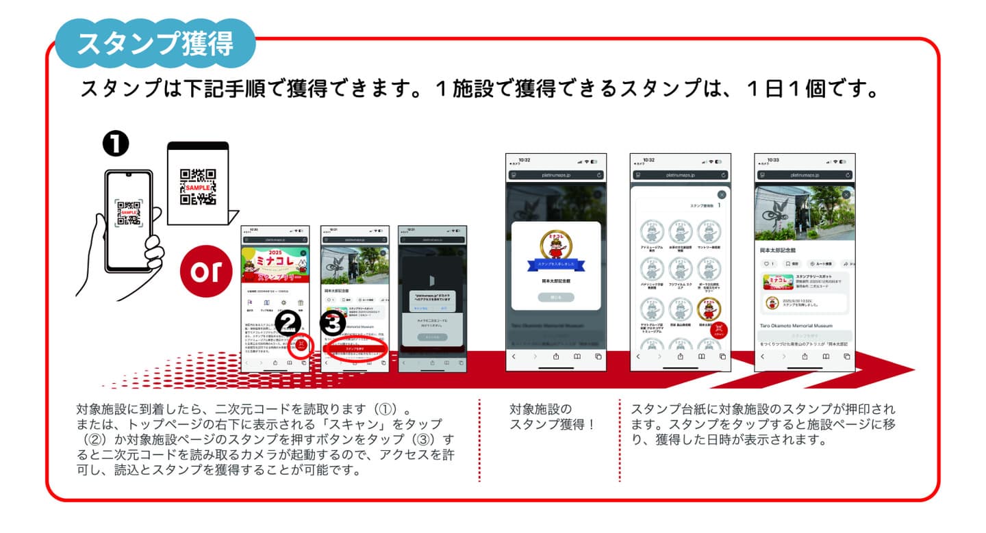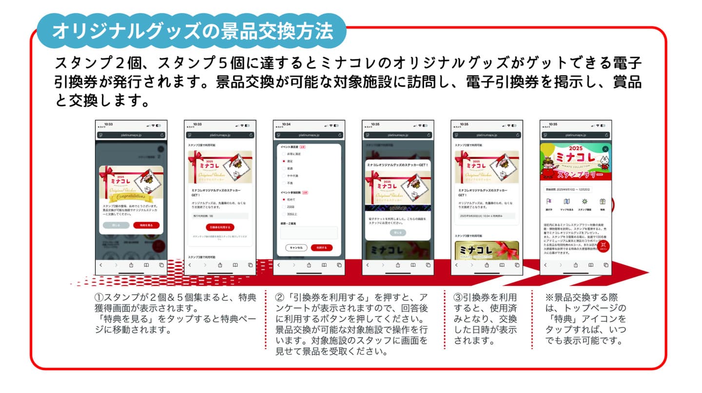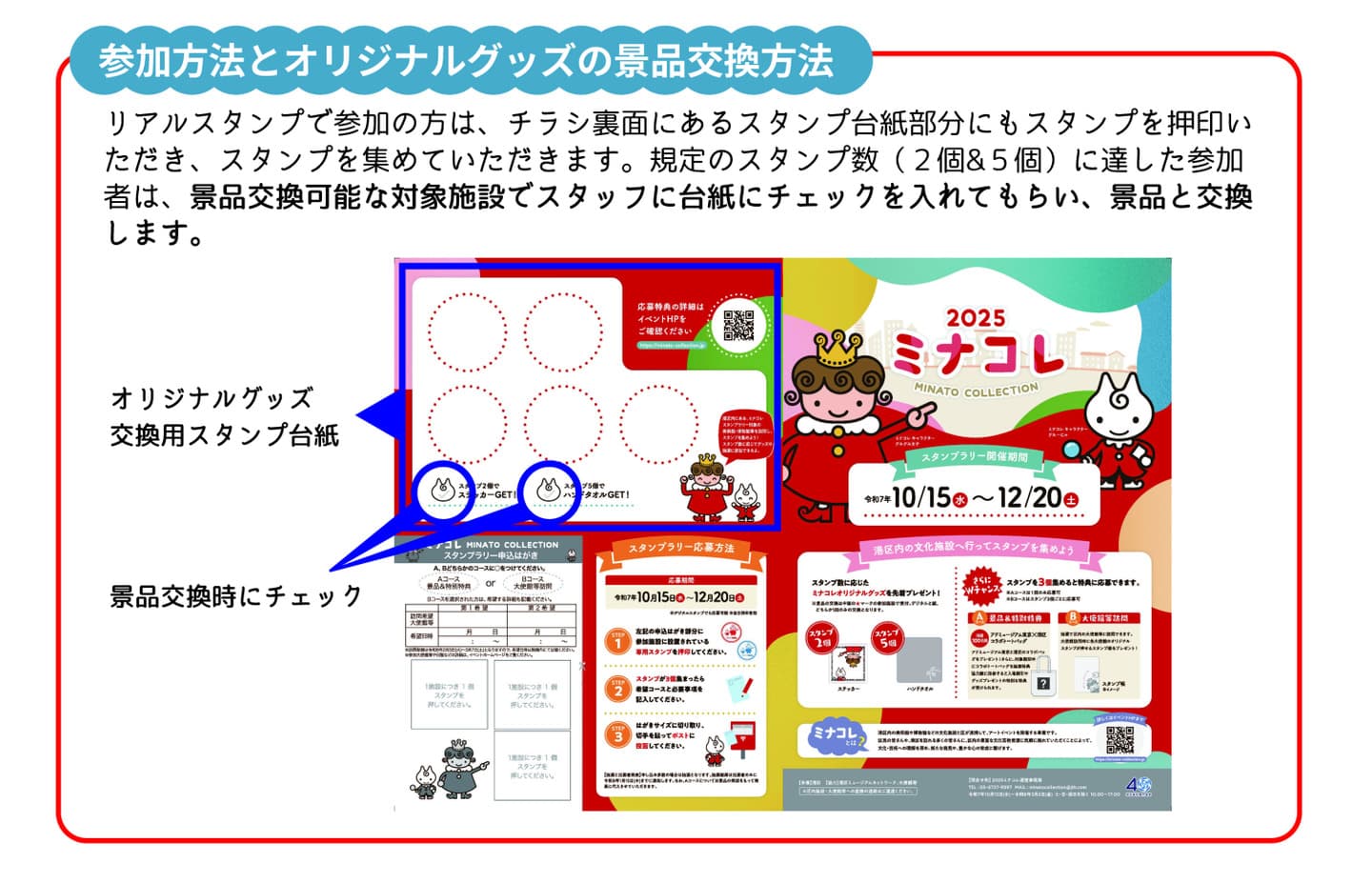 港区内にあるミナコレスタンプラリー対象の美術館・博物館等を訪問し、スタンプを集めると、スタンプ数に応じたミナコレオリジナルグッズを先着順にプレゼントします。